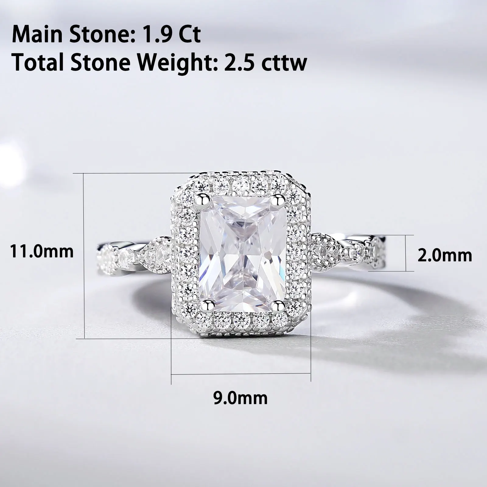 Размер основного камня: 6*8 мм, излучающий крой, 1.9ct