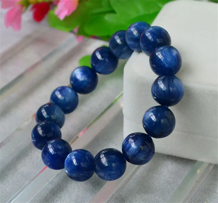 Подлинная синяя натуральная Кианит браслеты для женщин мужские стрейч Кристалл Круглый браслет из бисера