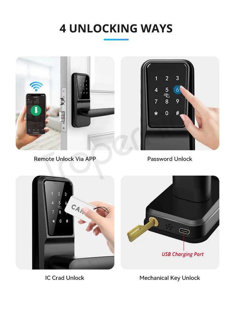 L1 БЕСКЛЮЧЕВОЙ замок со сканером отпечатков пальцев USB Перезаряжаемый Смарт IP66