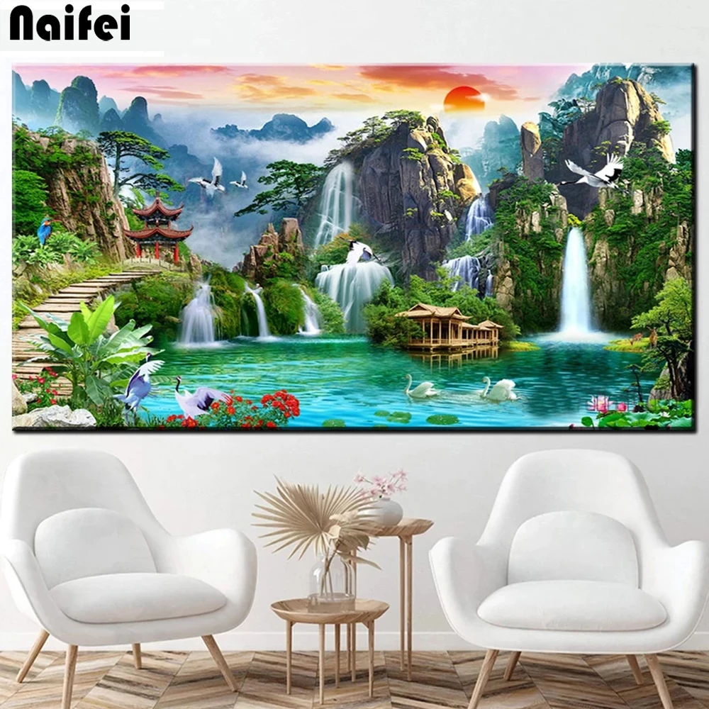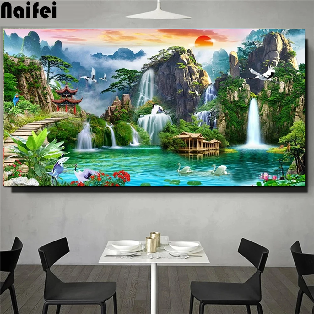 Большой размер 5d Diy Алмазная вышивка водопад и Горный озеро натуральный кран полная дрель алмазная живопись фэн шуй домашний декор