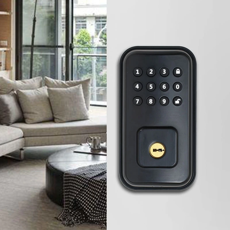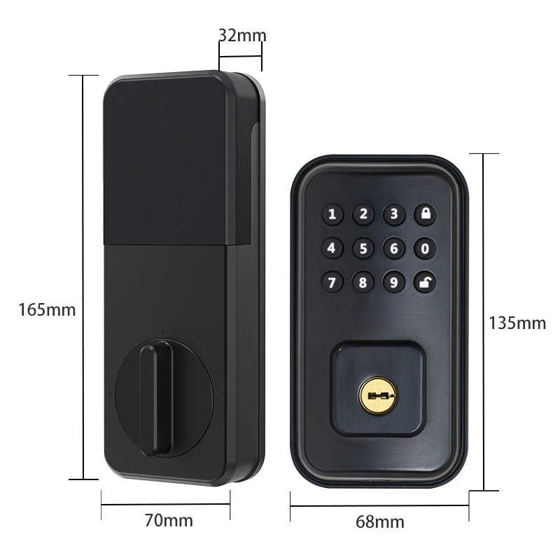 Specification:Color: BlackMaterial: Zinc alloyPower Supply: Micro USBPasswor Capacity: 100 pieceUnlock Way: Key,PasswordFull Power Unlock Time: 3000 timesBattery Type:4XAA Battery,Not IncludingDoor Thickness: 38-55mmPackage Including:1X Outer panel1X Inner panel1X Lock body1X Door clip1X Install accessory kit