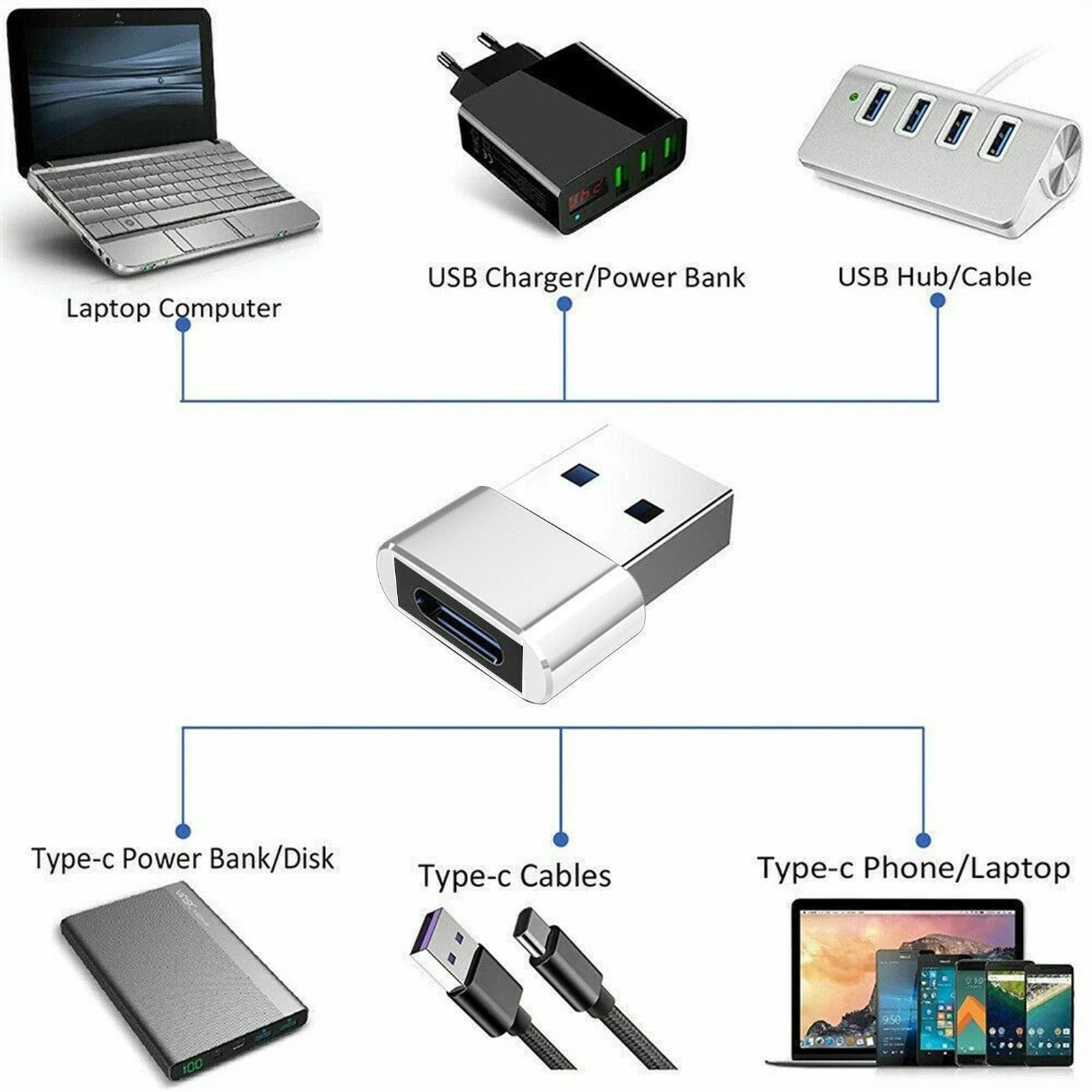 USB C гнездовой к USB A Штекерный адаптер Тип C зарядное устройство штекер конвертер питания 3 шт