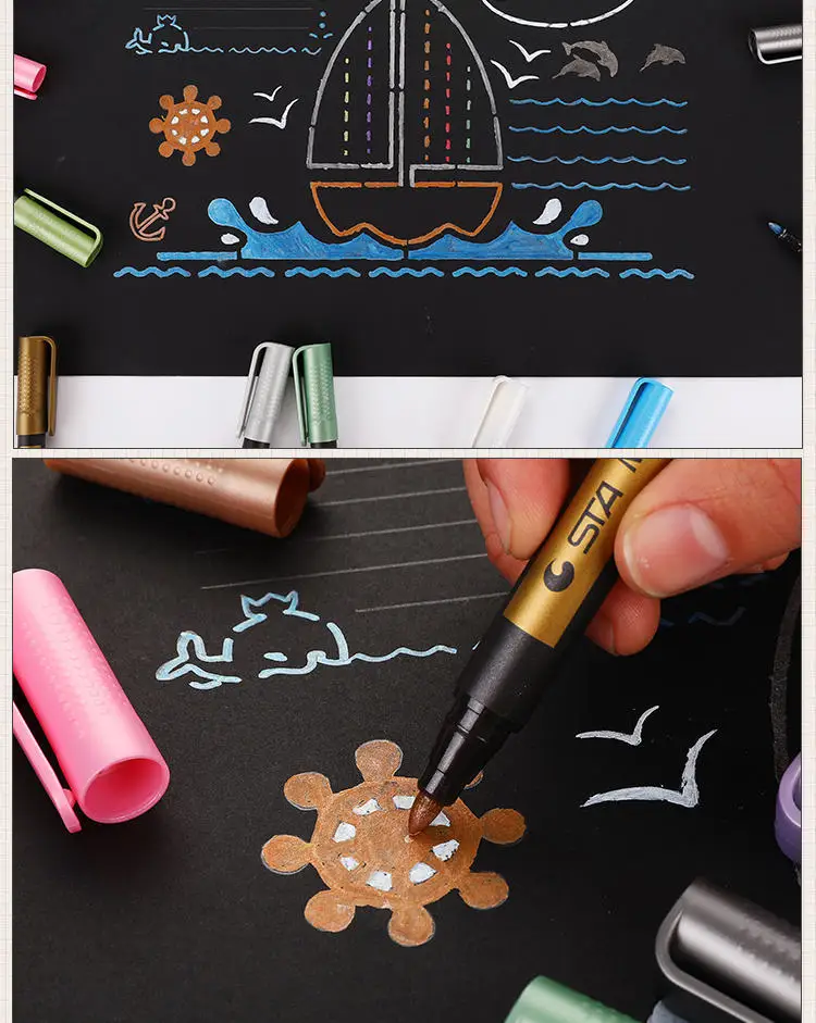 * Тонкий металлический цвет-содержит мерцающие чернила, мелко измельченные частицы, которые дают гладкий, ровный блеск, для вашего творчества красивая поздравительная открытка или добавить блеск к иллюстрации. * Цвет течет красиво и гладко-записывает очень плавно и легко скользит по странице, нет зазоров или пузырьков в чернилах. * Комфорт и безопасность-содержит мелкие мелкоземельные частицы, с чернилами на водной основе, без кислоты, экологически чистые и нетоксичные, что обеспечивает комфорт даже при длительной работе с ними. * Эти металлические ручки непрозрачные, что означает, что они полностью покрывают основную поверхность. Непрозрачные чернила хорошо контрастируют с цветными и темными бумагами. Также хорошо видно на металлических, стеклянных, пластиковых и многих других поверхностях.
