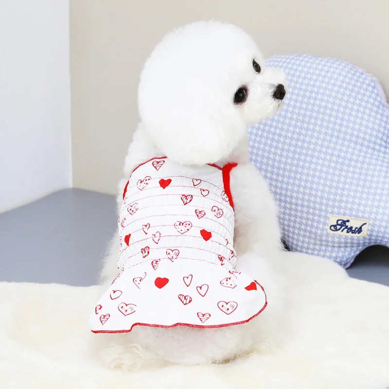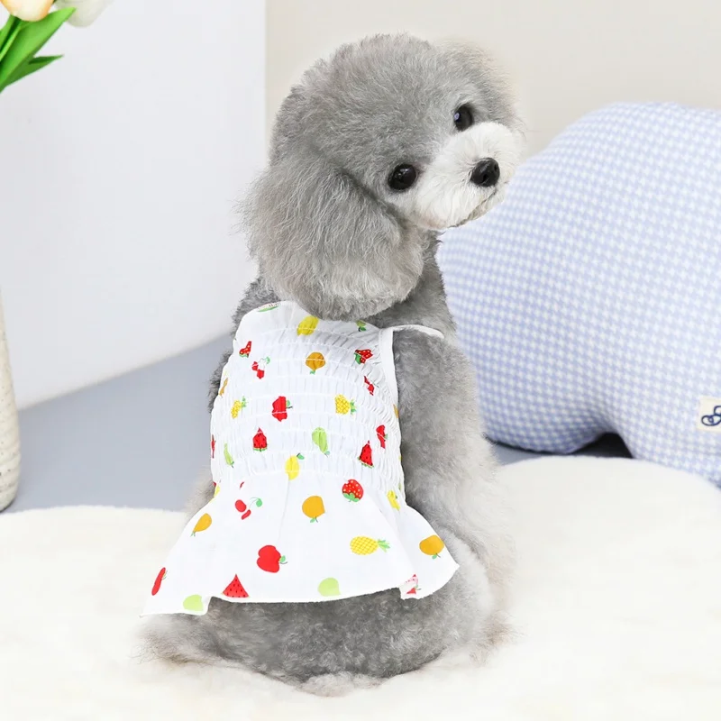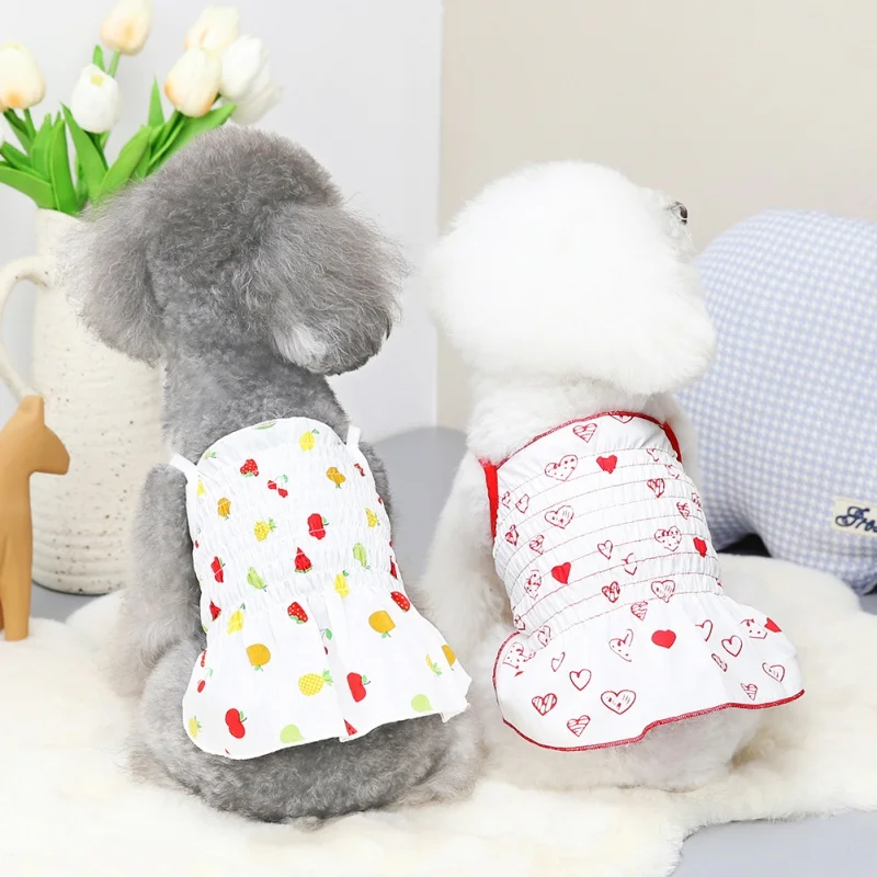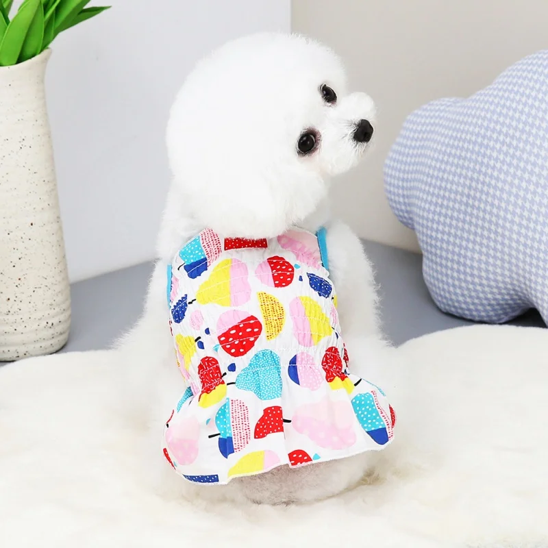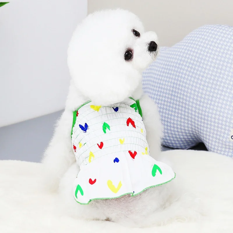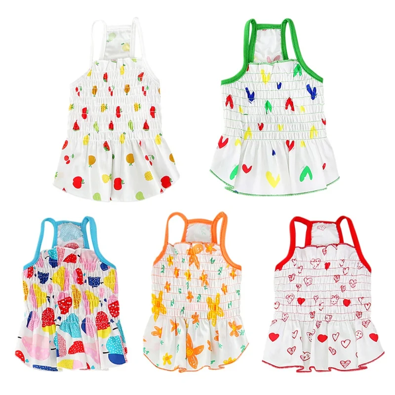 5 цветов: Футболка для маленькой собачки легкая и подходит для домашних животных летом, одежда для маленьких щенков не легко выцветает; 5 разных цветов и Полосатая юбка с принтом чтобы удовлетворить требования вашего питомца к повседневной одежде.