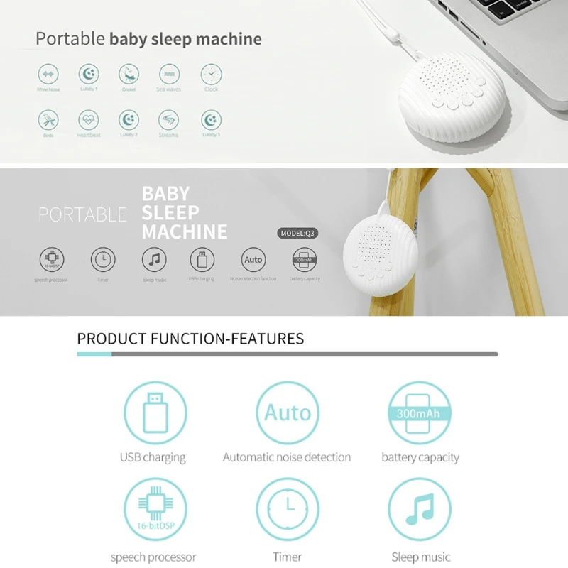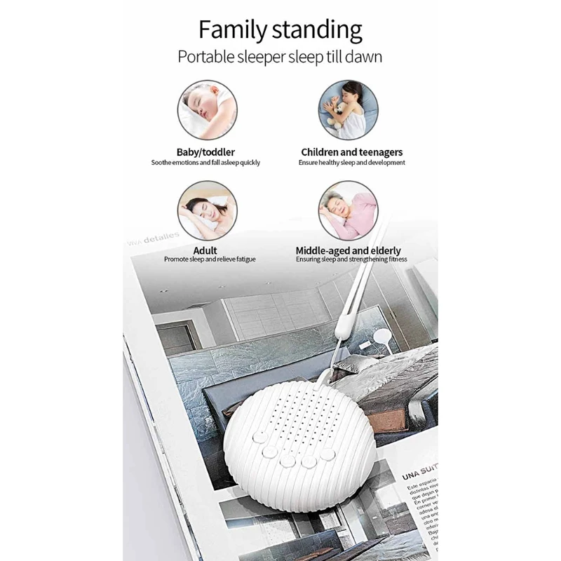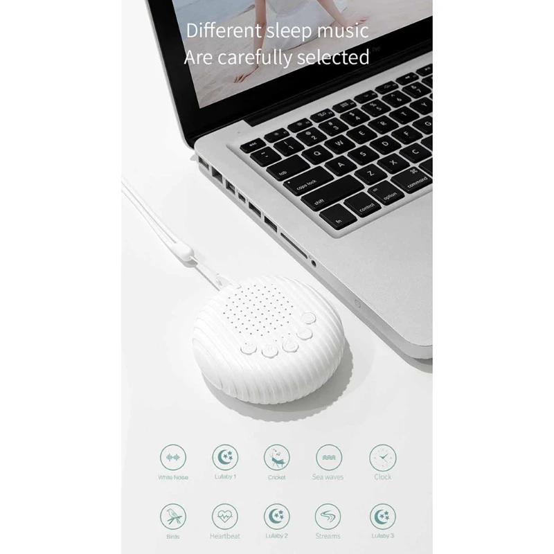 Особенности:1. 10 гладких и естественных звуков: белый шум, волны океана, звуки птиц, звуки сердцебиения, звуки часов, крикет, звуки беговой воды и 3 колыбельные. Это помогает блокировать отвлекающие факторы и создавать идеальную среду для сна, расслабления или концентрации. Очень легко выбрать нужные звуки.