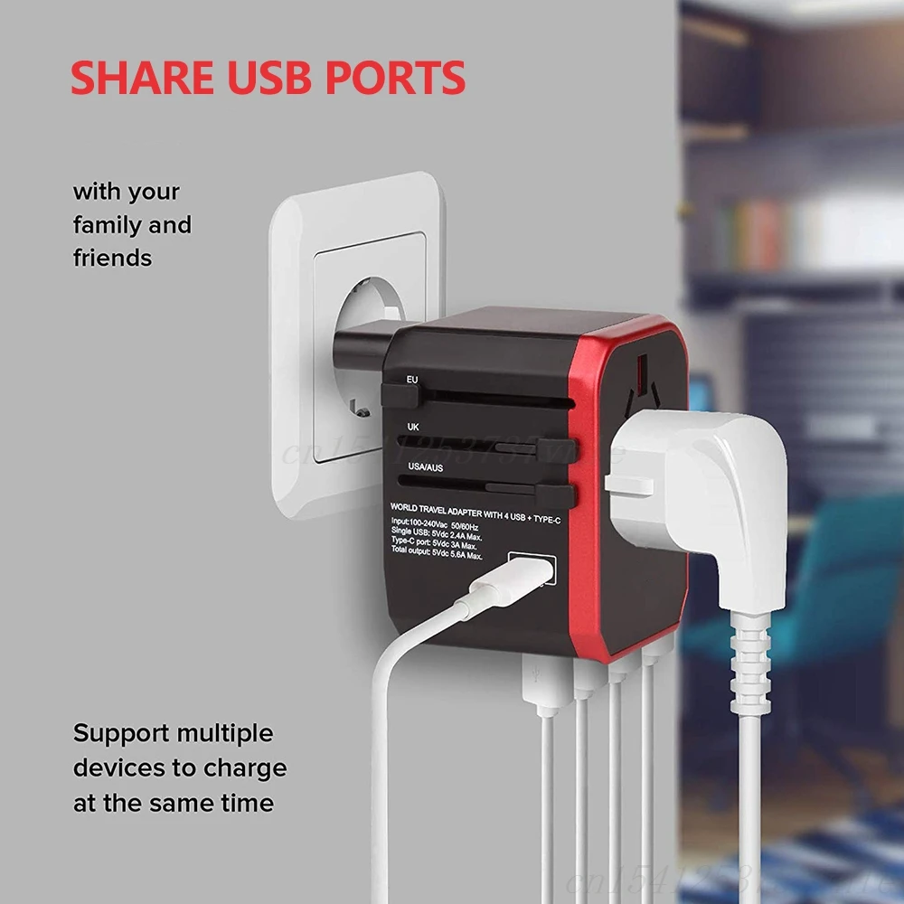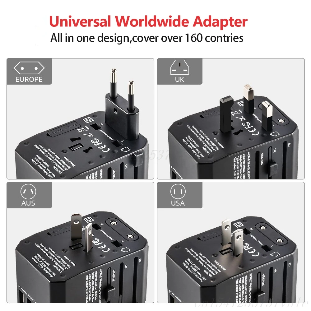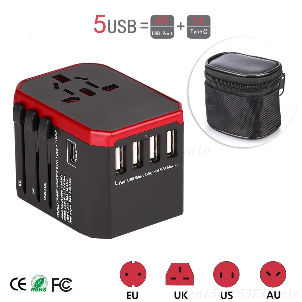 Дорожный адаптер Международный универсальный адаптер питания все-в-одном с 5 USB по всему миру настенное зарядное устройство для Великобритании/ЕС/США/Азии