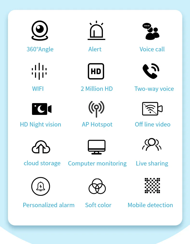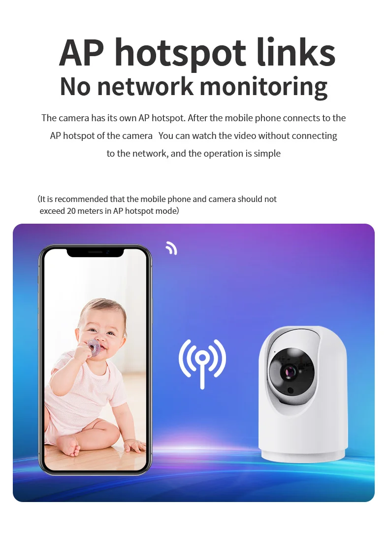 Поддержка Wi-Fi, точки доступа, двусторонний голосовой Интерком, голосовой сигнализацией, нажатием изображения, TF картой памяти.