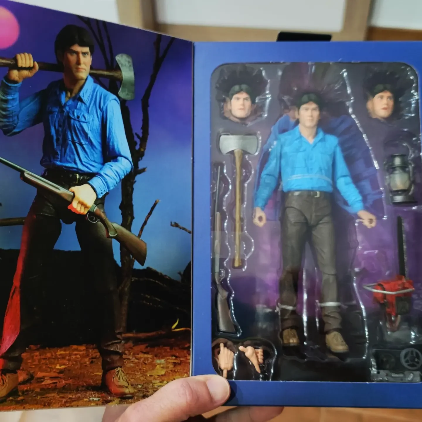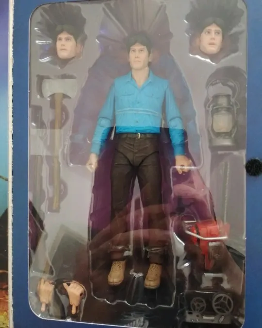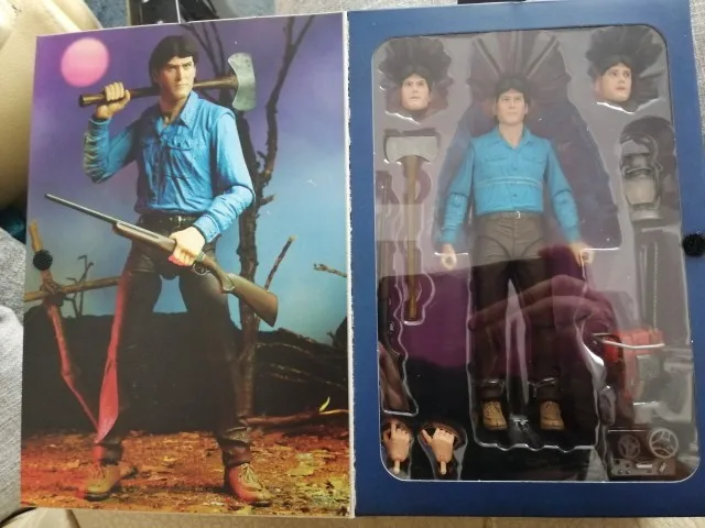 Original Neca figure. Good quality and finishes. The joints are too rigid as is usual in Neca. It does not have many accessories and the ones it brings are well chosen in relation to the film but they could have included the Necromonicon. Includes two extra heads and two right hands. The box comes with a view of the original movie poster with window to see the figure. Shipping to Spain took about 8 days and arrived well protected. The seller has a lot of Neca material and fast shipping. Recommended. A +