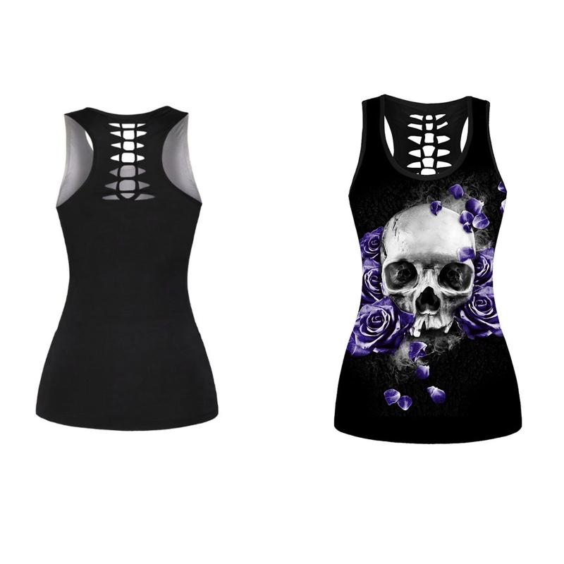Готический панк-стиль Харадзюку, фиолетовый Скелет нагрудника и принт со звездой, облегающие топы.