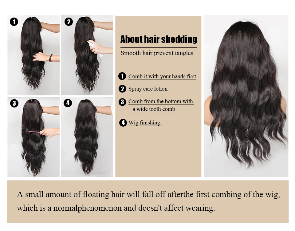 2. При расчесывании парика сначала медленно расчешите концы волос гладко, а затем расчешите корни волос, что может уменьшить выпадение волос