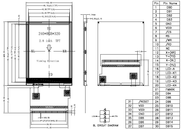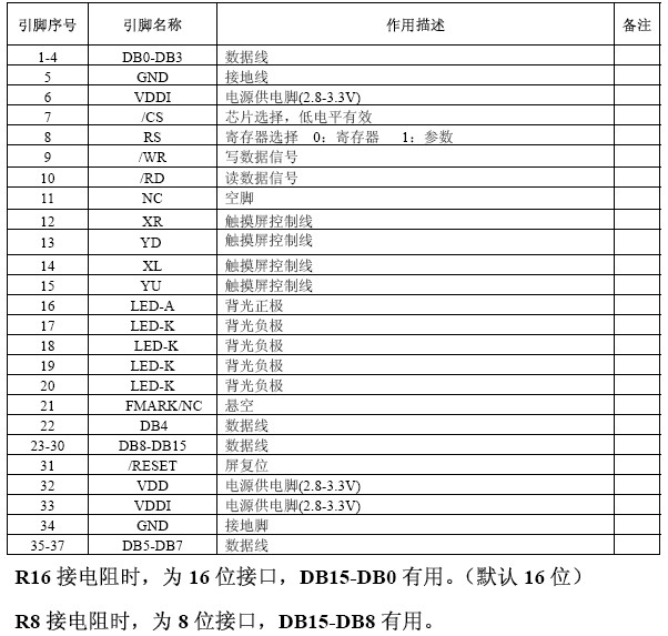 Интерфейс Тип: MCU8080 параллельный порт 37PIN (8 бит/16 бит совместим)