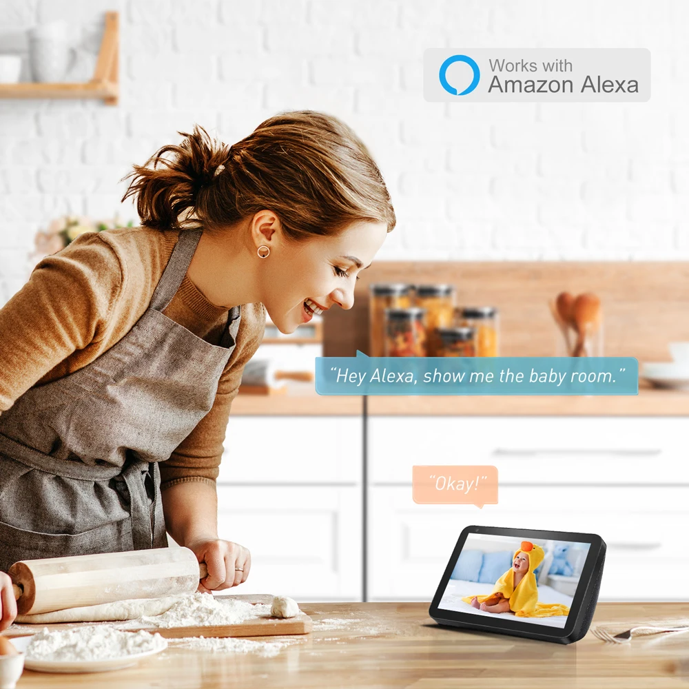 Сопряжение смарт-беспроводной камеры с Alexa echo или Google assistant. Используйте простую голосовую команду, чтобы попросить Alexa или Google Assistant просмотреть вашу живую камеру на устройствах совместимый с Alexa или Google.