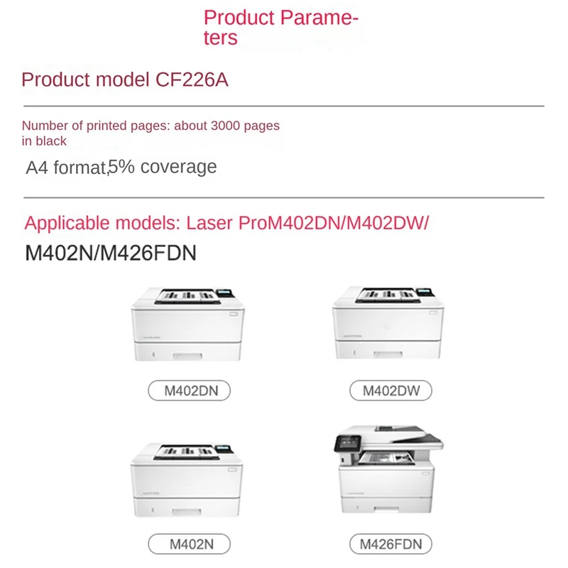 Замена для CF226A 26A совместимый тонер-картридж для HP Laserjet Pro M402N, M402dn, M402dw, MFP M426fdn серии