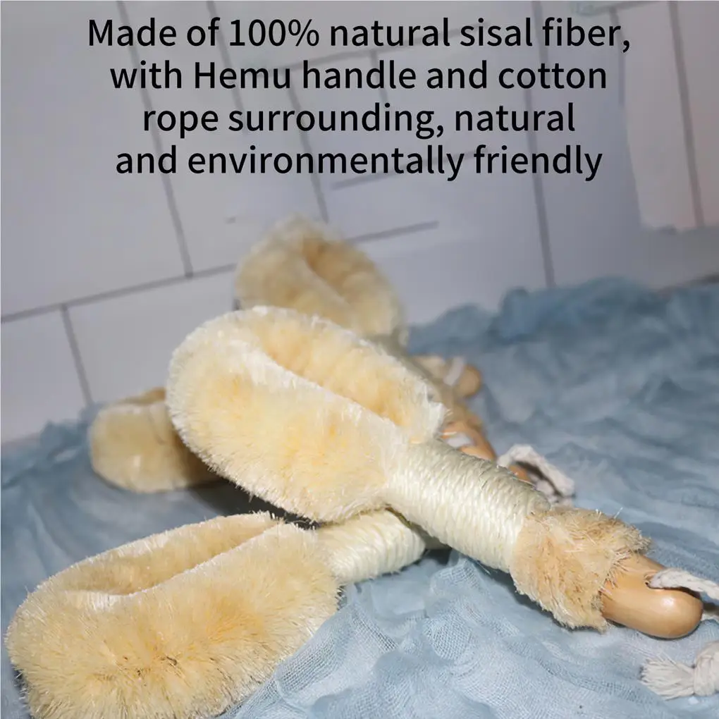 Качественный материал: Массажная щетка изготовлена из качественного сизаля, с деревянной ручкой и хлопковой веревкой вокруг нее, деликатная для кожи.