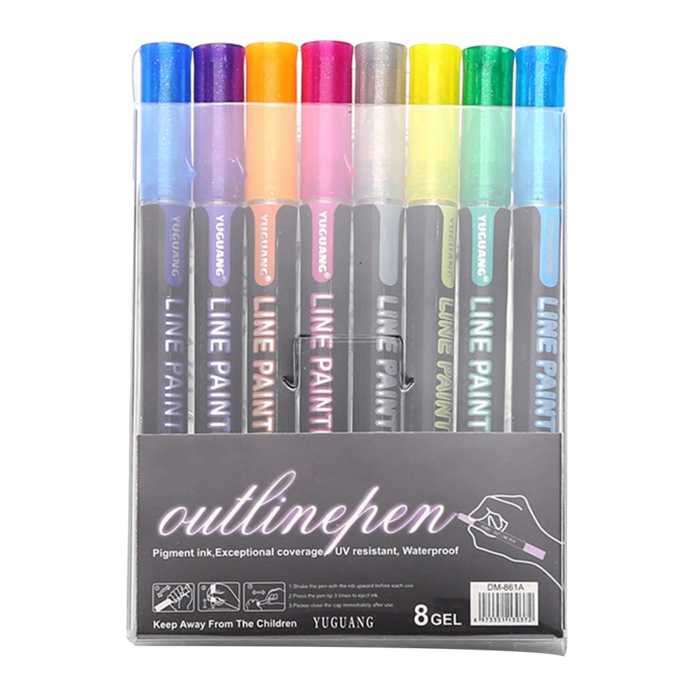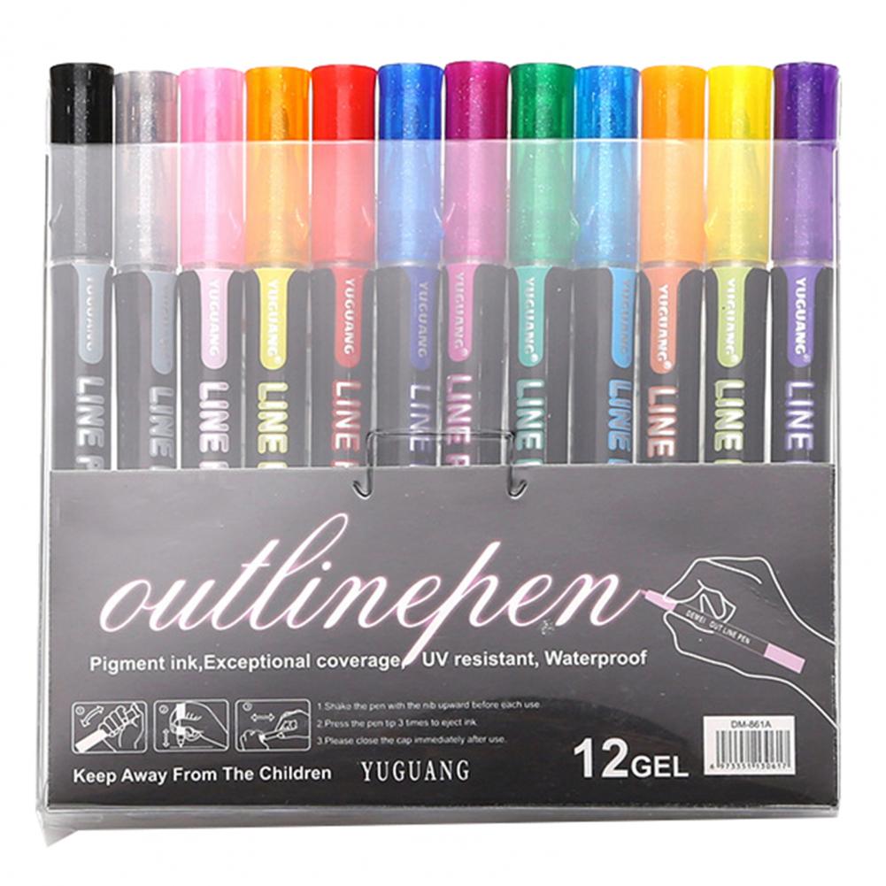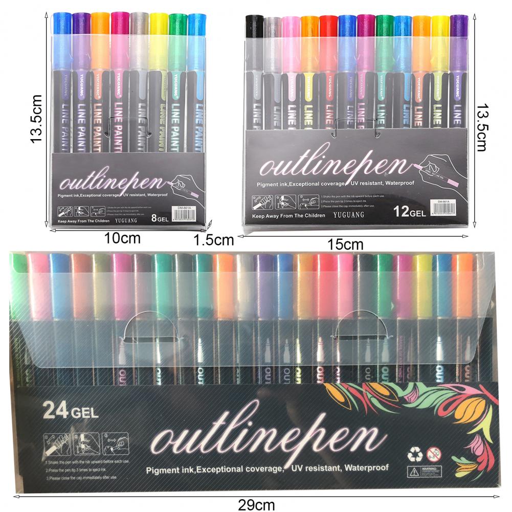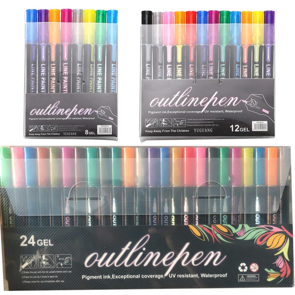 8/12/24 шт. Красящие ручки флуоресцентных DIY инструмент для творчества, стойкие к выцветанию контур двойная линия ручка USB флэш маркер школьные принадлежности