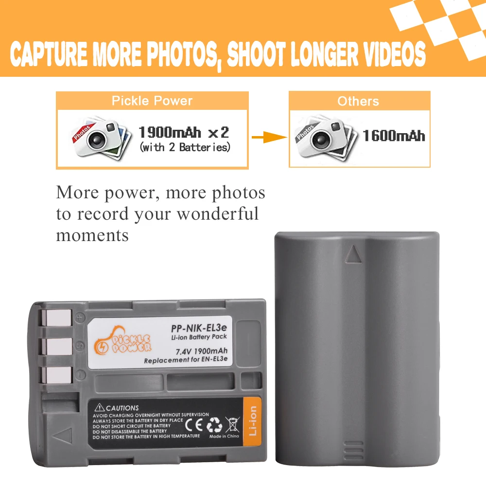 Аккумулятор Pickle Power 1900mAh EN-EL3e для Nikon D50, D70, D70s,D80,D90,D100,D200,D300,D300S,D700,D900