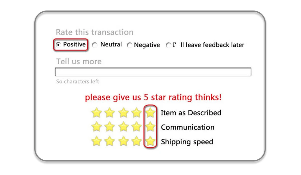 1. If you are satisfied with our items and service, please leave positive feedback for us.