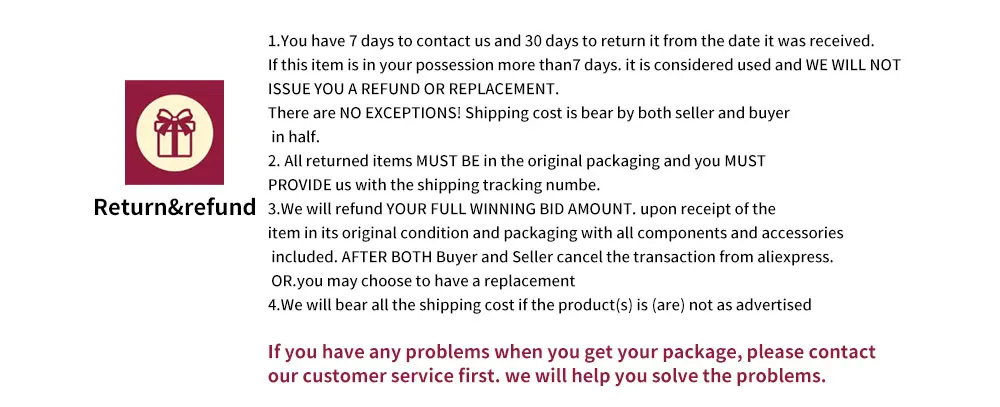 Customer Service:After you receive our goods, please email us within 3 days if there are damages in transit. But you must email us clear photos of them to prove.