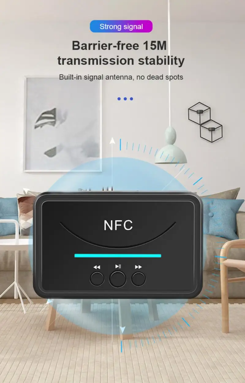 Беспроводной bluetooth-адаптер поддерживает подключение до 15 метров/49 футов, контролируя воспроизведение музыки на большом расстоянии.