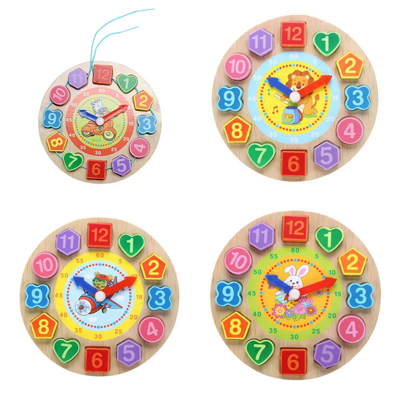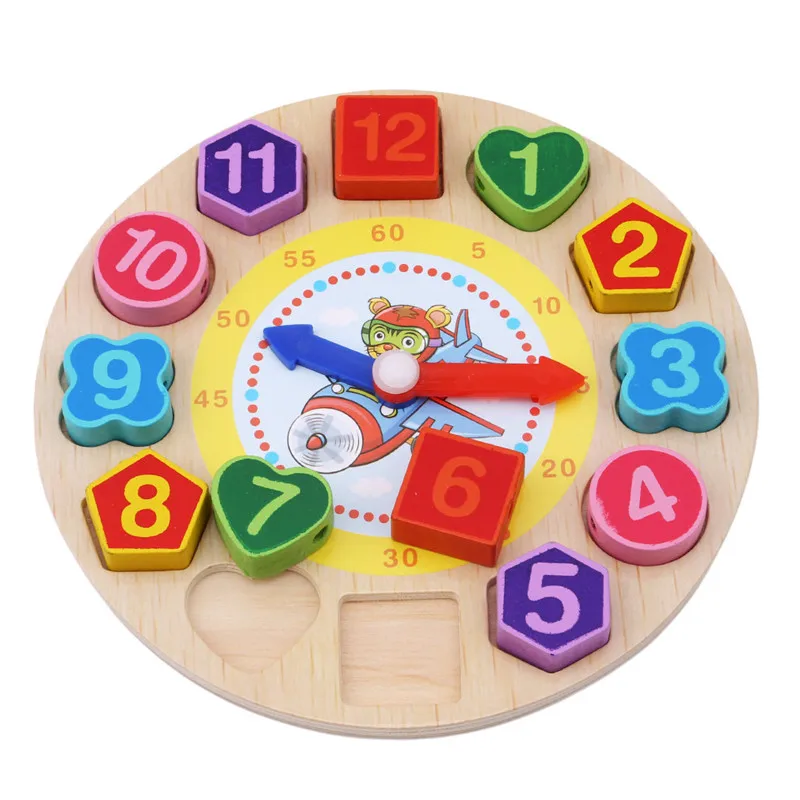 2. Две вращающиеся руки, разные цифры соответствуют различным предметам, каждая часть является независимой пластиной, ребенок в соответствии с его формой, номером и цветом будет помещен в соответствующее положение, узнать цифры, распознает часы.