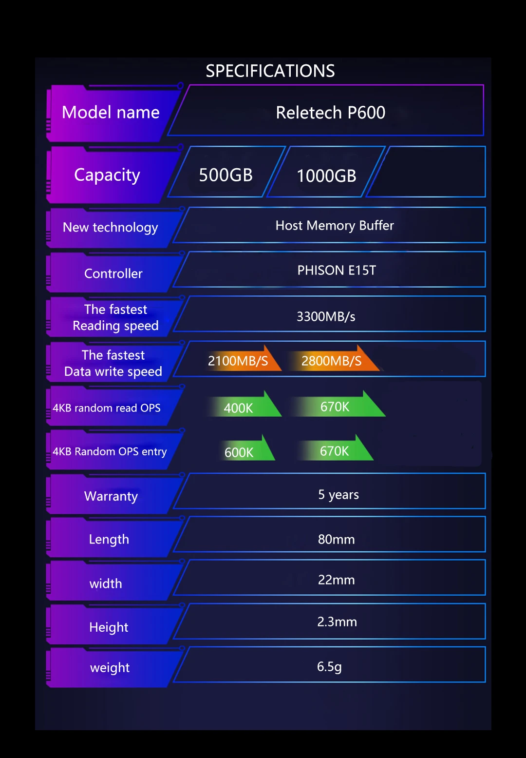 500 Гб: чтение (макс.) до 3300 Мб/с/запись (макс.) до 2300 Мб/с