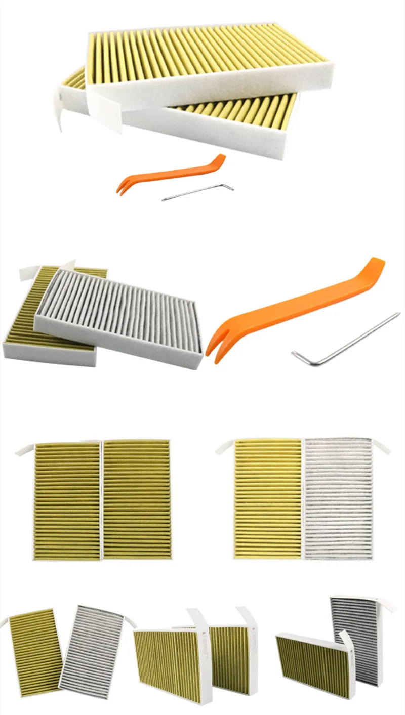 Характеристики: Добавление фильтрующего слоя с активированным углем; С уплотнительной губкой для увеличения герметизации продукта; Прямоугольное компактное поперечное сечение волокна увеличивает емкость от пыли.