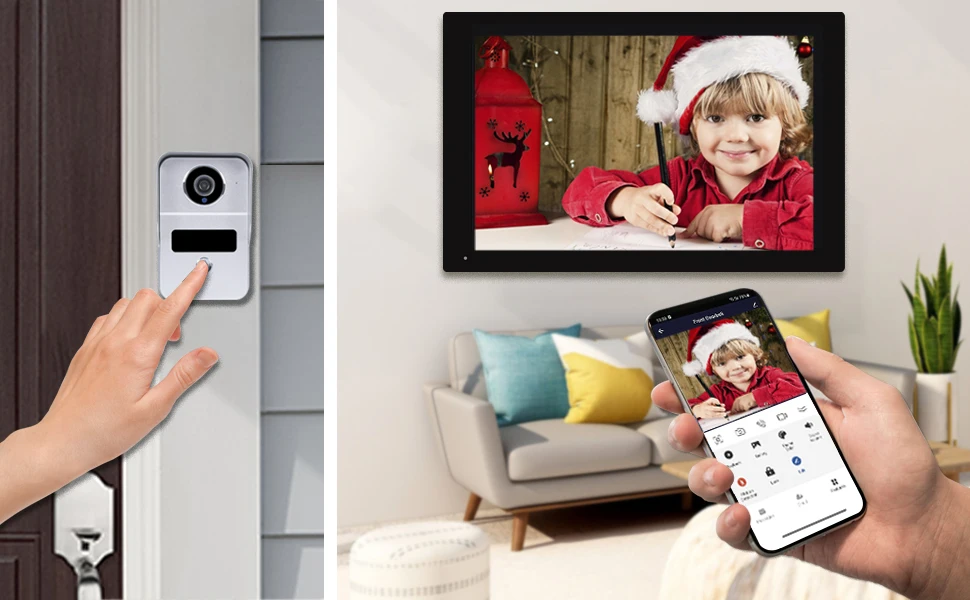 Поддержка смартфона iOS и Android с помощью приложения Tuya smart, когда кто-то звонит на улице, ваш монитор и смартфон будут звонить одновременно.