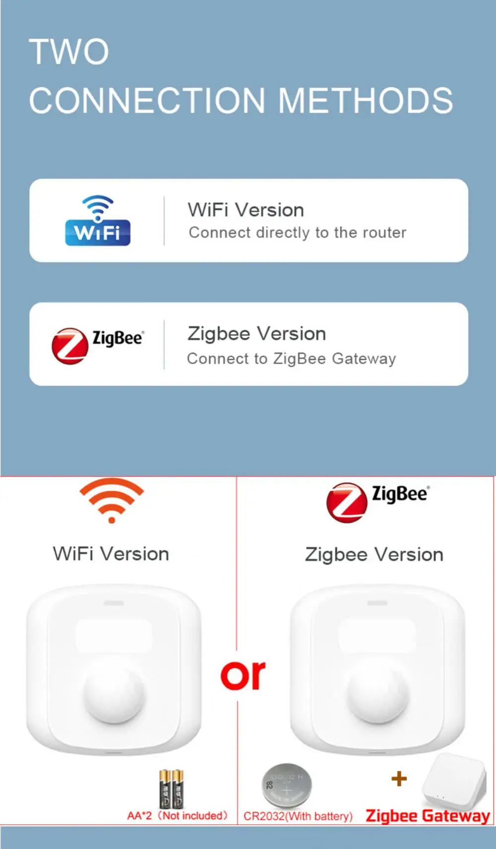 1. Этот датчик разделен на версию wifi и версию zigbee, пожалуйста, ищите его перед покупкой.