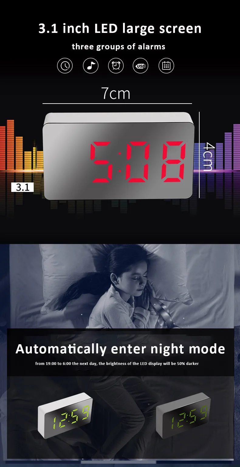 Светодиодные зеркальные Настольные Цифровые Часы Будильник Повтор Отображение времени ночной Светильник настольный USB будильник домашний декор подарки для детей