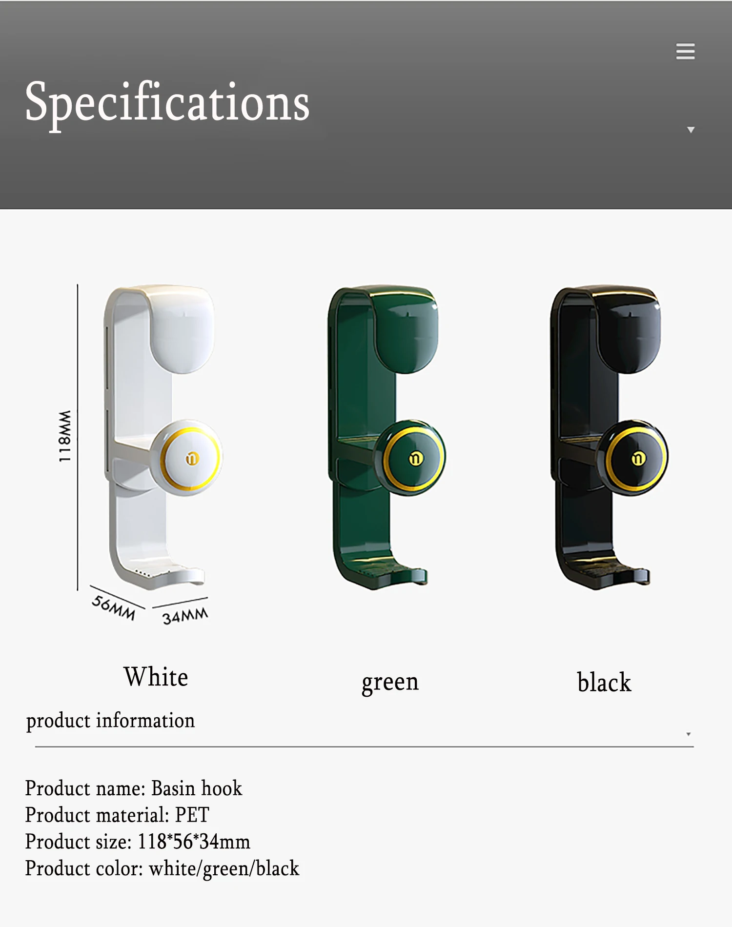 Product name: Basin hook