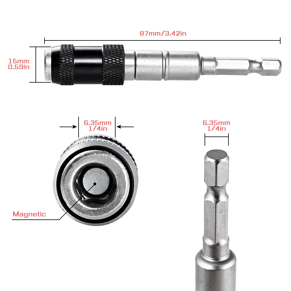 3. Magnetic screwdriver bit is suitable for the transfer of drills, screws, etc.