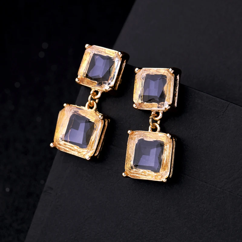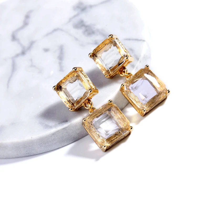 Женские прозрачные серьги-гвоздики BALANBIU в квадратной форме, рождественские подарки золотого цвета, модные ювелирные изделия, оптовая продажа