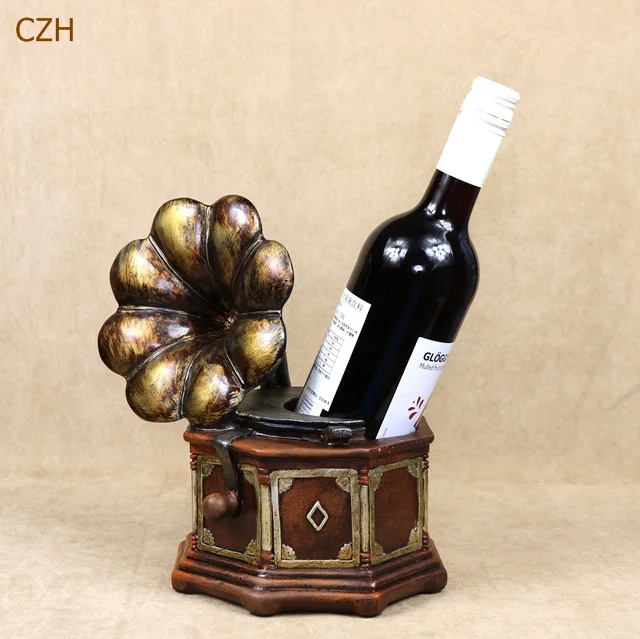 1. Описание: ностальгическая модель фонографа держатель бутылки вина декоративный грамофон винного кронштейна для барной посуды Орнамент Ремесло для домашнего бара и офиса.