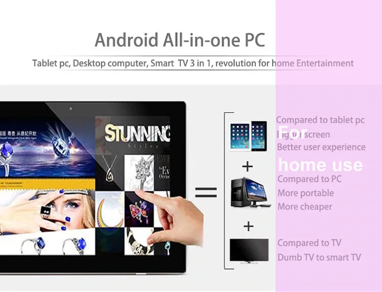 Основные моменты это 14 дюймов Android все в одном Настольный ПК (IPS widescreen1920 * 1080,RK3288 4 ядра, 2GB Оперативная память 1GB nand, BT, Ethernet, Wi-Fi, VESA и т. д.)