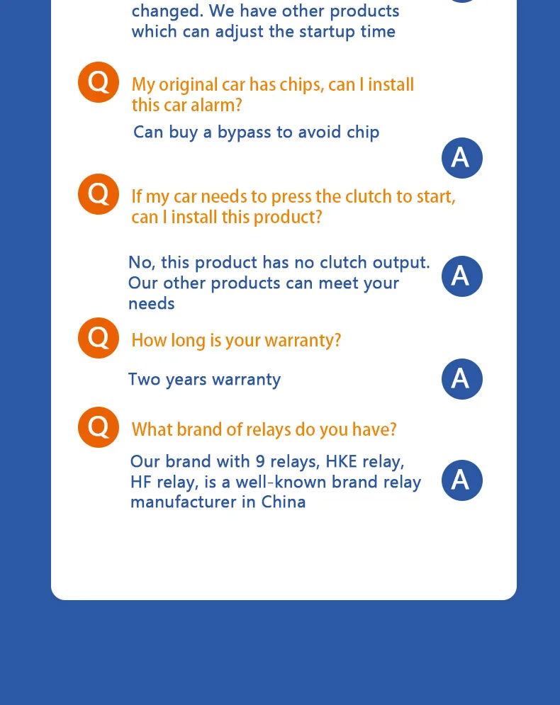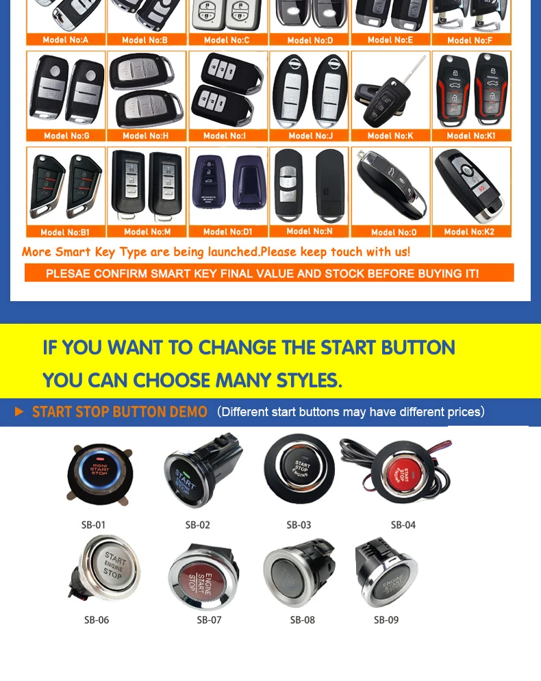 Автомобильная сигнализация детали-Основные функции-1 шт..Система входа без ключа2. Толчок старта стоп двигатель3. Двигатель дистанционного запуска4. Боковая дверь сигнализации триггера5. Удаленный открытый багажник6. Удаленный поиск автомобиля7. Сигнализация запуска Illeage8. Умная защита от угона9. Режим отключения звука10. Автоматизация центрального замка (не отключается)11. Вспышка открытой двери (не отключается)Следующие аксессуары могут быть заменены, различные аксессуары имеют разные цены