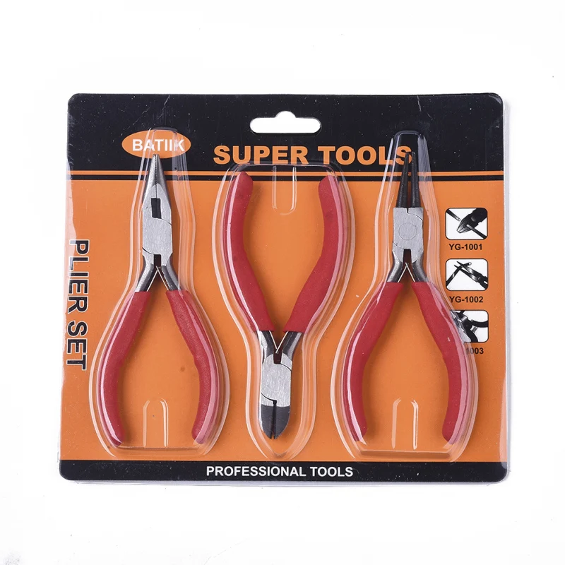45 # набор стальных ювелирных плоскогубцев, включая плоскогубцы для резки проволоки, плоскогубцы с круглым носом и плоскогубцы для резки по бокам, красные, 3 шт./компл.