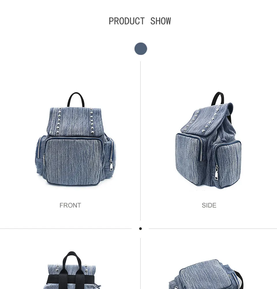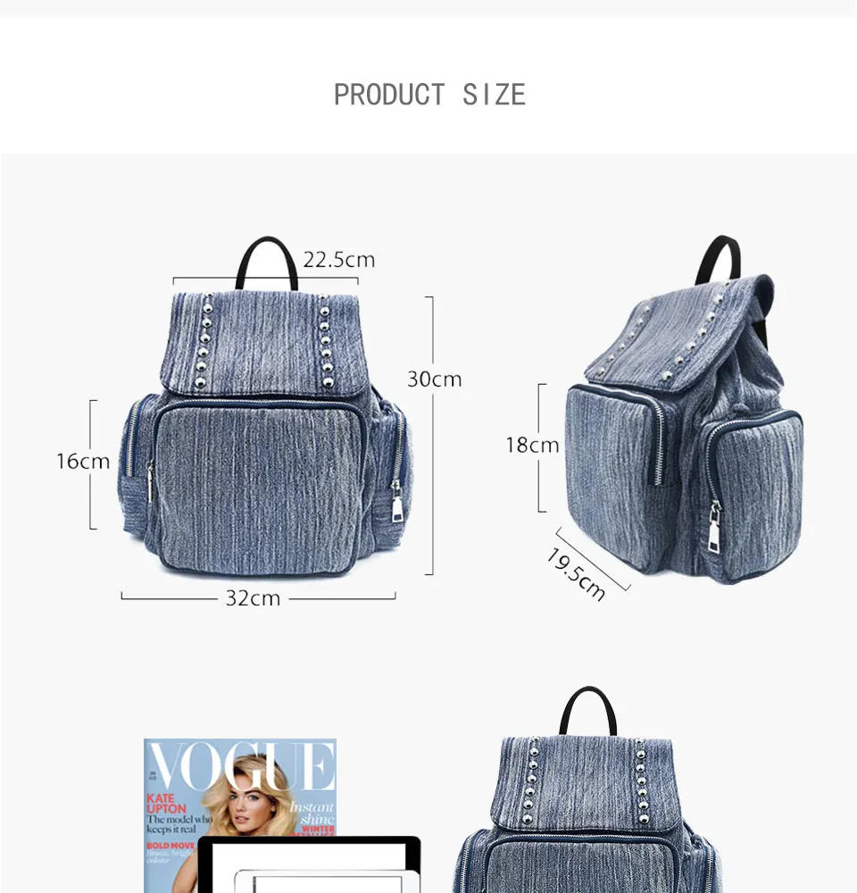 Женский вместительный и прочный Джинсовый Рюкзак с заклепками, стильный школьный рюкзак с кулиской для путешествий, Осень-зима 2019