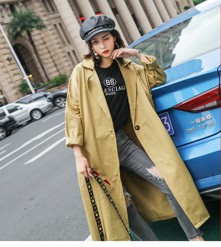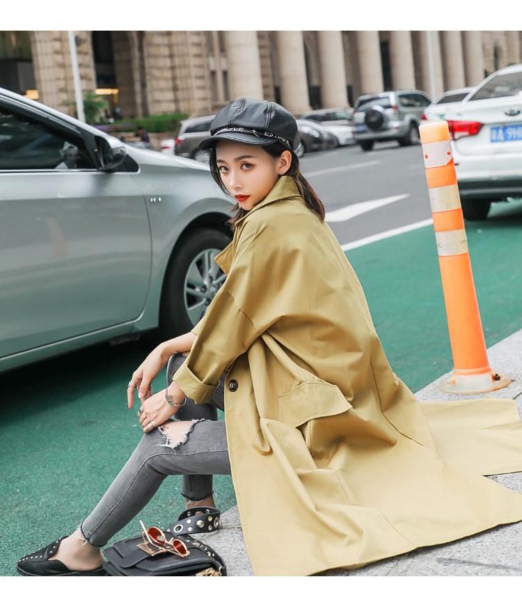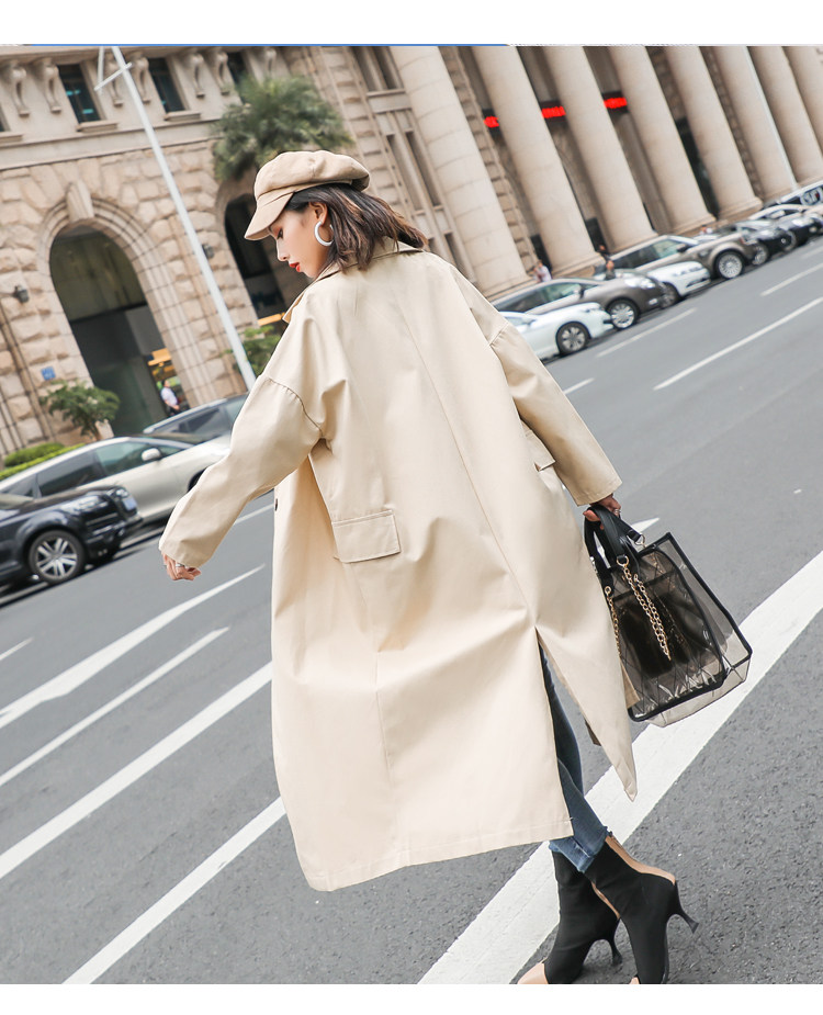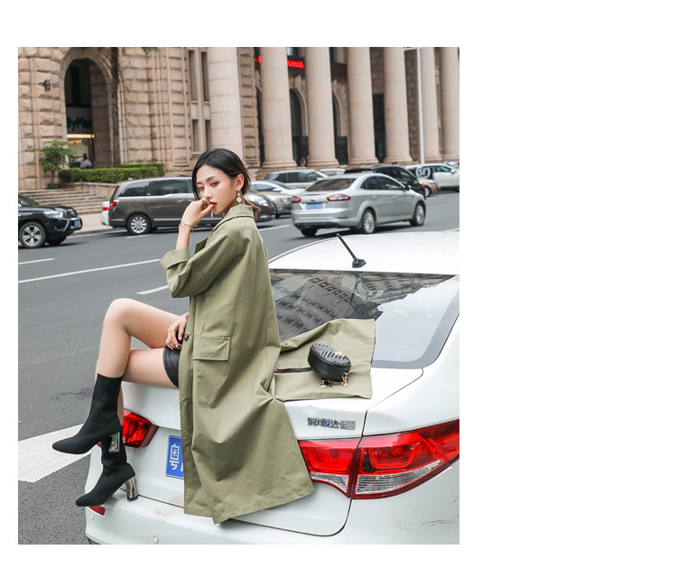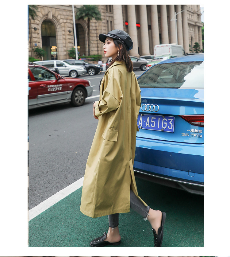 Шикарная Женская осенне-зимняя длинная двубортная куртка цвета хаки деловая