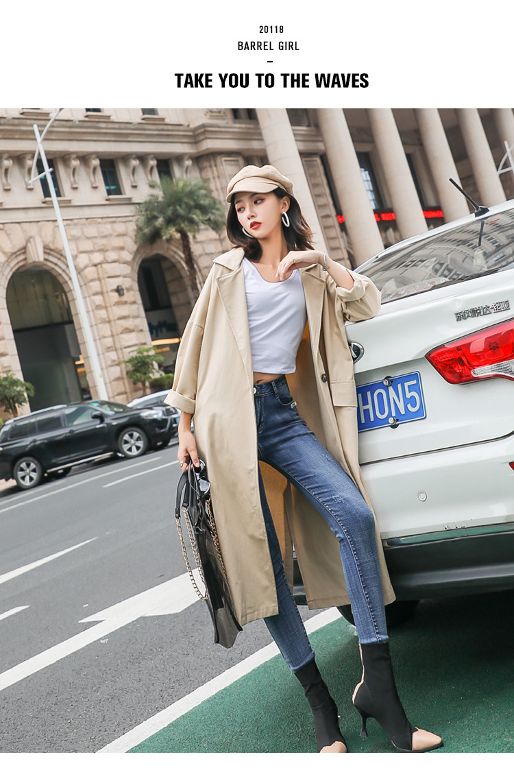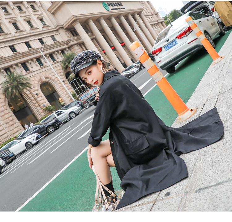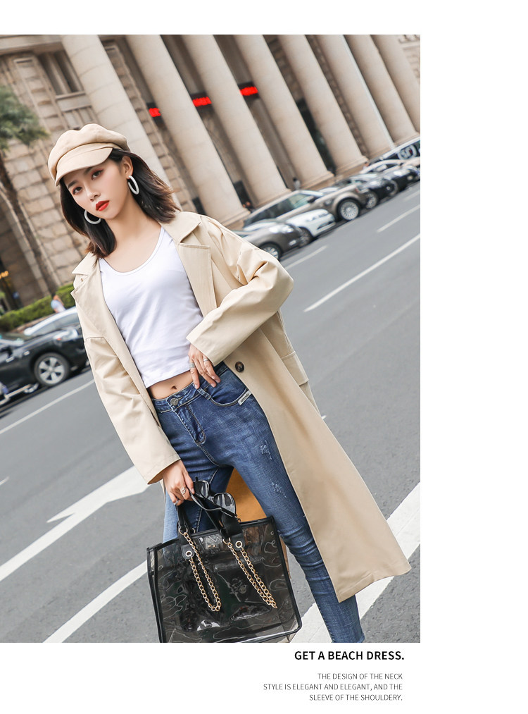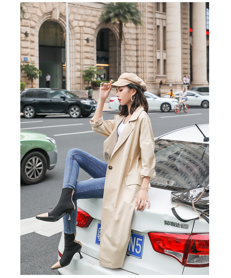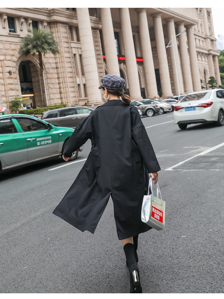 Шикарная Женская осенне-зимняя длинная двубортная куртка цвета хаки деловая