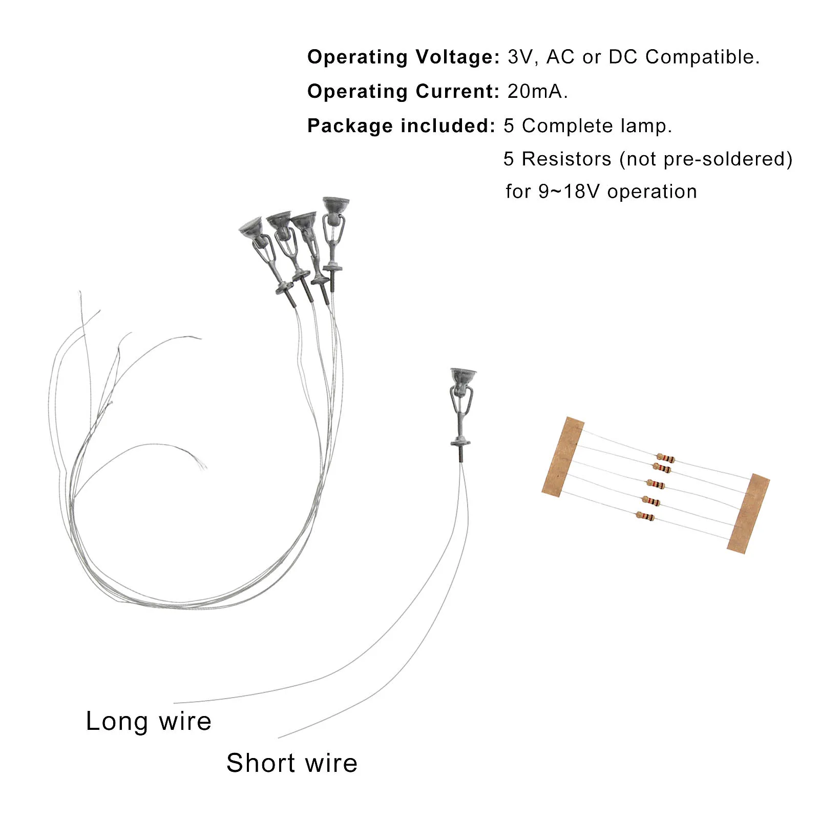Совершенно новый. Идеально подходит для железной дороги и строительства! Сделано с белыми светодиодами. В комплекте с проводами и светодиодами и могут быть освещены. Эти фонарные столбы подходят для использования только при напряжении питания 3 В. Не используйте их непосредственно на 12 В или 16 В, чтобы не повредить светодиодный индикатор. Вы должны подключить резистор в серии, прежде чем вы будете использовать их на 12V или 16V, я поставлю совместимые резисторы бесплатно. Пожалуйста, примените правильный рабочий ток 20 мА к каждому светодиодный.