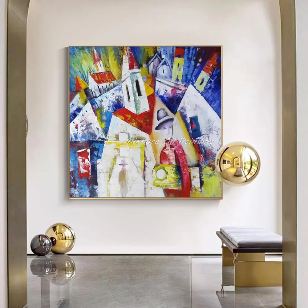 Mintura ручная роспись красочная мировая картина маслом на холсте Современная Абстрактная городская Настенная картина для гостиной украшения дома