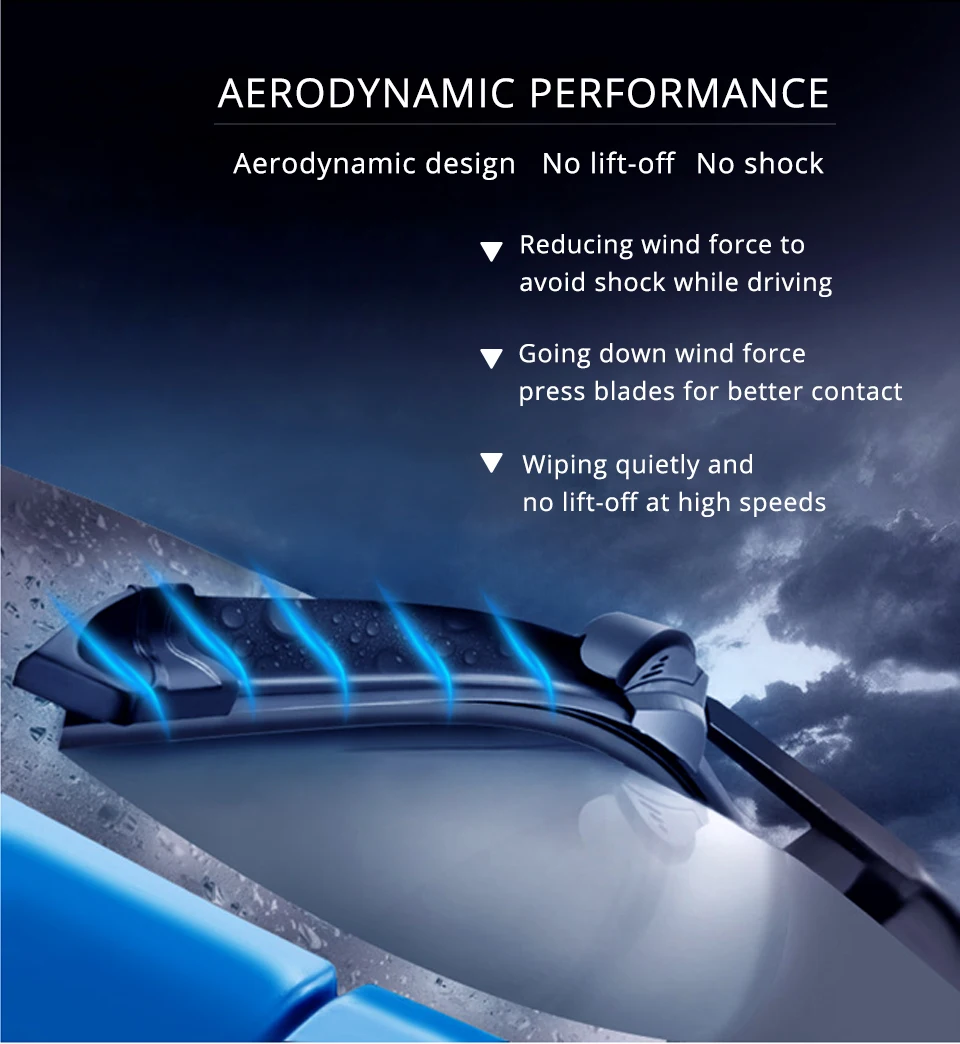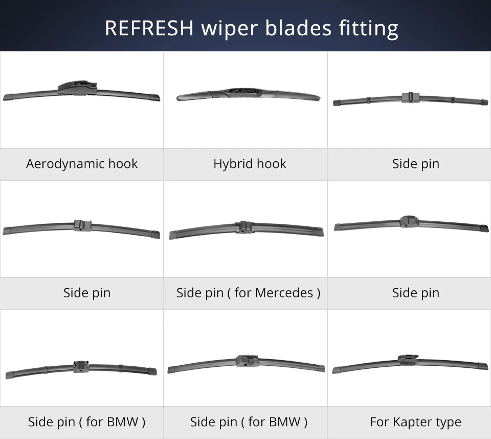 Excellent performance at high speeds.Both REFRESH beam and hybrid wiper blades have aerodynamic designs with spoiler. Part of wind force goes down to hold the blades on windshield and prevent from lift-off while driving at high speeds