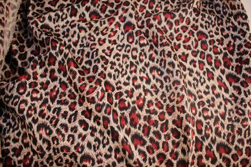 Оптовая продажа леопардовой ткани в метр качество печатных атласная ткань с коричневой черной леопардовой тканью