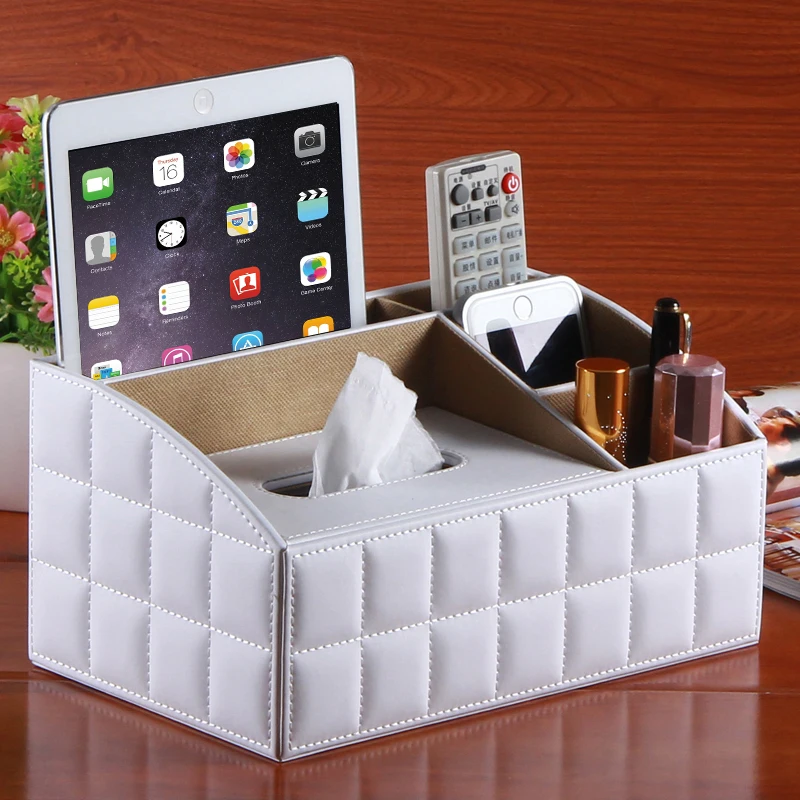 Коробка для салфеток из искусственной кожи Настольный ящик для хранения пультов дистанционного управления для косметики