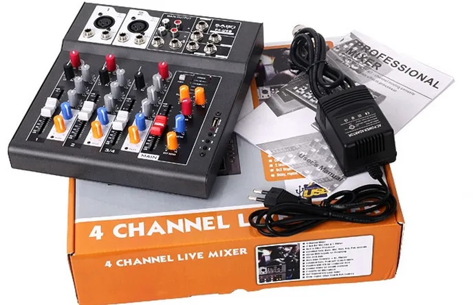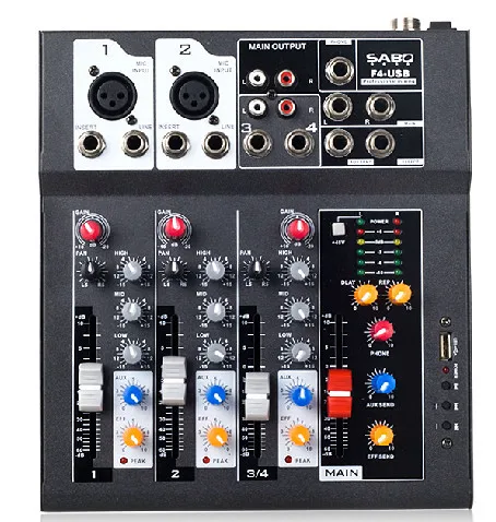 F4-USB мини аудио микшер консоль с USB, встроенный процессор звуковой микшер, 4-канальный микшер звуковая консоль 48 в источник питания