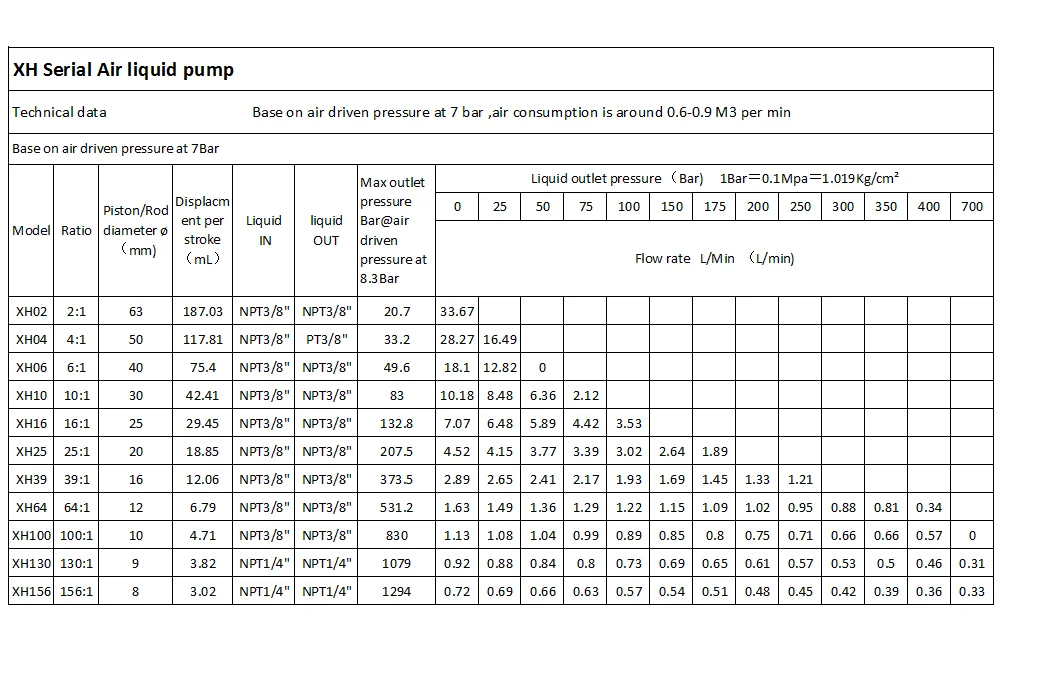 Воздушный жидкостный насос состоит из поршня с воздушным приводом непосредственно и в сочетании с шатунным стержнем для небольшого поршня areaAir. Воздушный поршень работает под высоким давлением