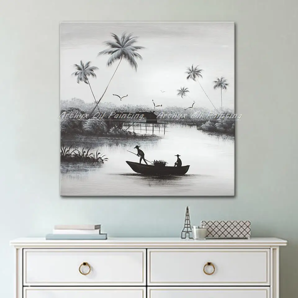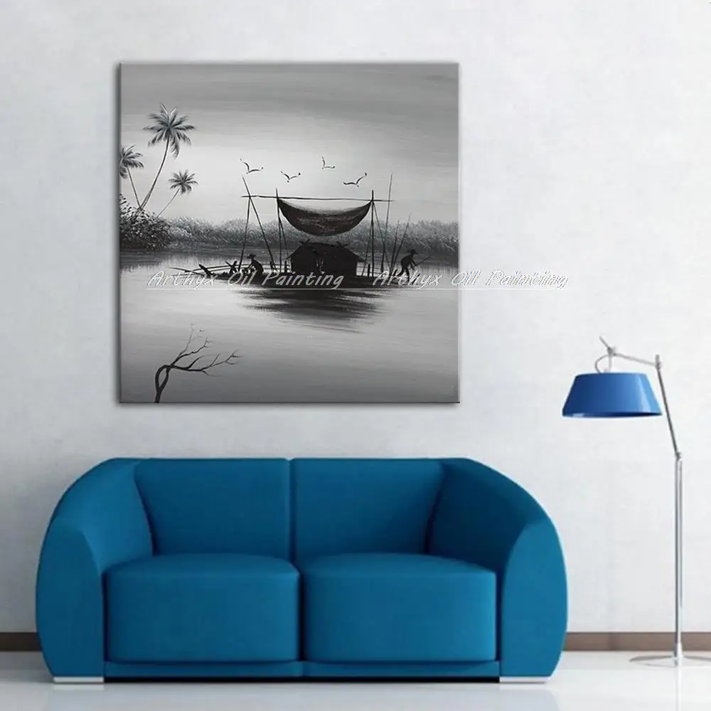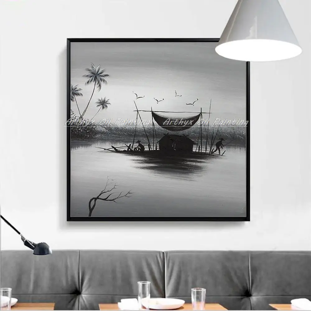 Arthyx ручная работа рыбацкий семейный пепельный черный пейзаж картина маслом на холсте настенные художественные картины для комнаты украшения дома офиса