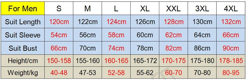 Рекомендуемый размер мужского костюма: