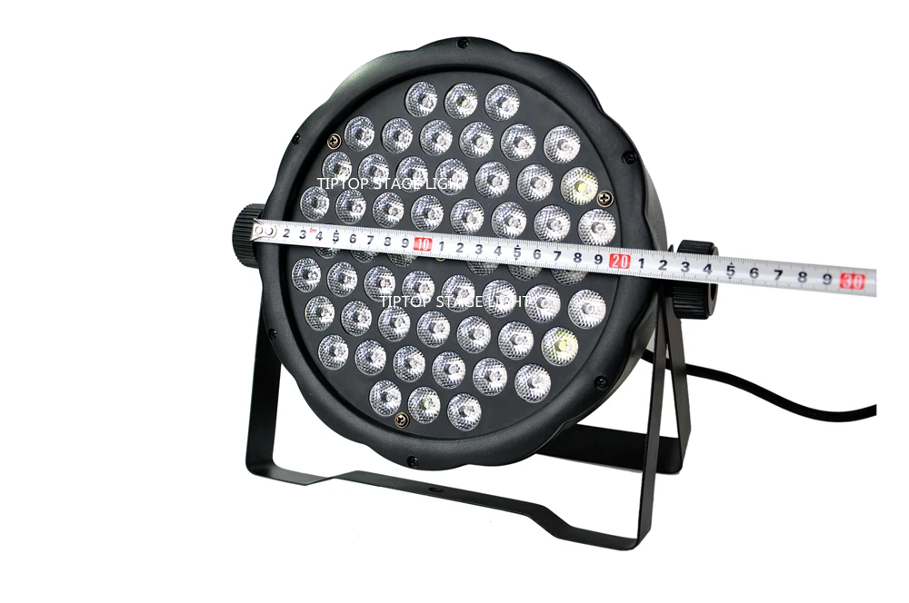 Напряжение: AC90-260V.50-60hz Мощность: 50 Вт Количество светодиодов: 54 шт. 1 Вт светодиодные лампы Количество светодиодов: R:12G:18 B:18 W:6 Цвет излучаемого: одноцветный RGBW DMX каналы: 8 каналов Угол Линзы: 25 °/ 45 ° (опционально) Функции: DMX/Sound/Auto/Manual/Master-slave Срок службы светодиода: 100000 часов Сертификация: CE ROHS Материал корпуса: пластиковый чехол черного цвета Упаковочный лист для каждого блока: 1 х светодиодный светильник 1 x Кабель DMX 1 Руководство пользователя Размер светильника: Длина: 23 см Ширина: 23 см Толщина: 6 см