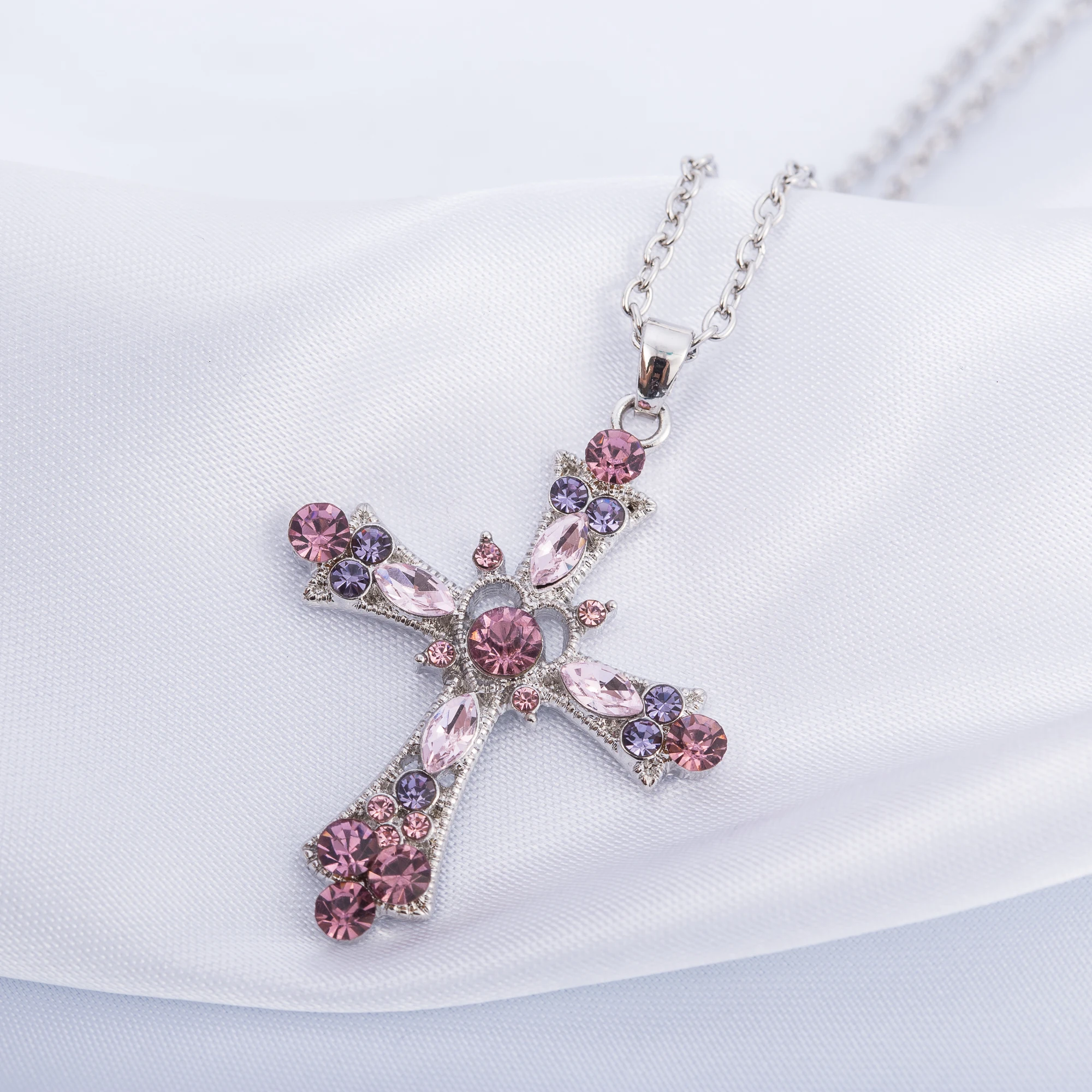 Название продукта:Крест из горного хрусталя с кристалламиОжерелье из цинкового сплаваЦвет: Серебряный цвет с цветными камнямиМатериал: цинковый сплавРазмер: 33*45 ммДлина цепочки: 45 + 5 см